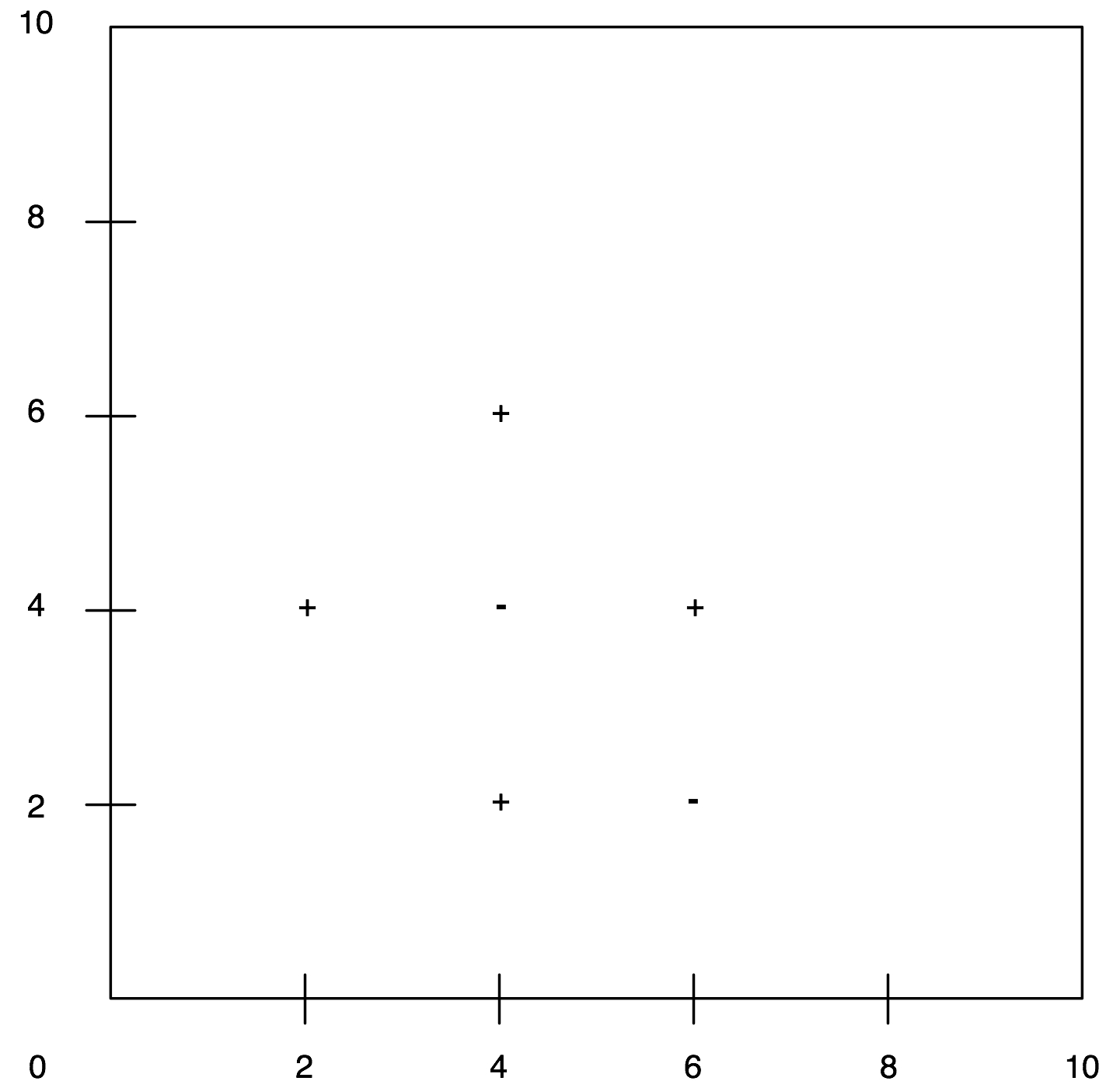 (A) Draw the decision boundary for the 1-nearest neighbor algorithm assuming that we are using standard Euclidean distance to compute nearest neighbors.