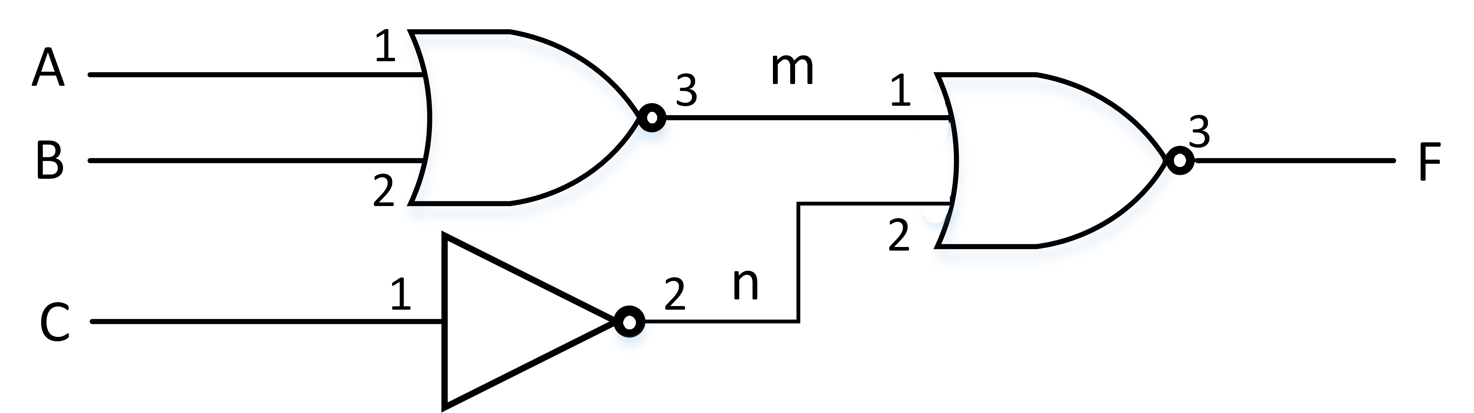 In the following circuit, we are going to convert equation to map to nor gates and a inverter: