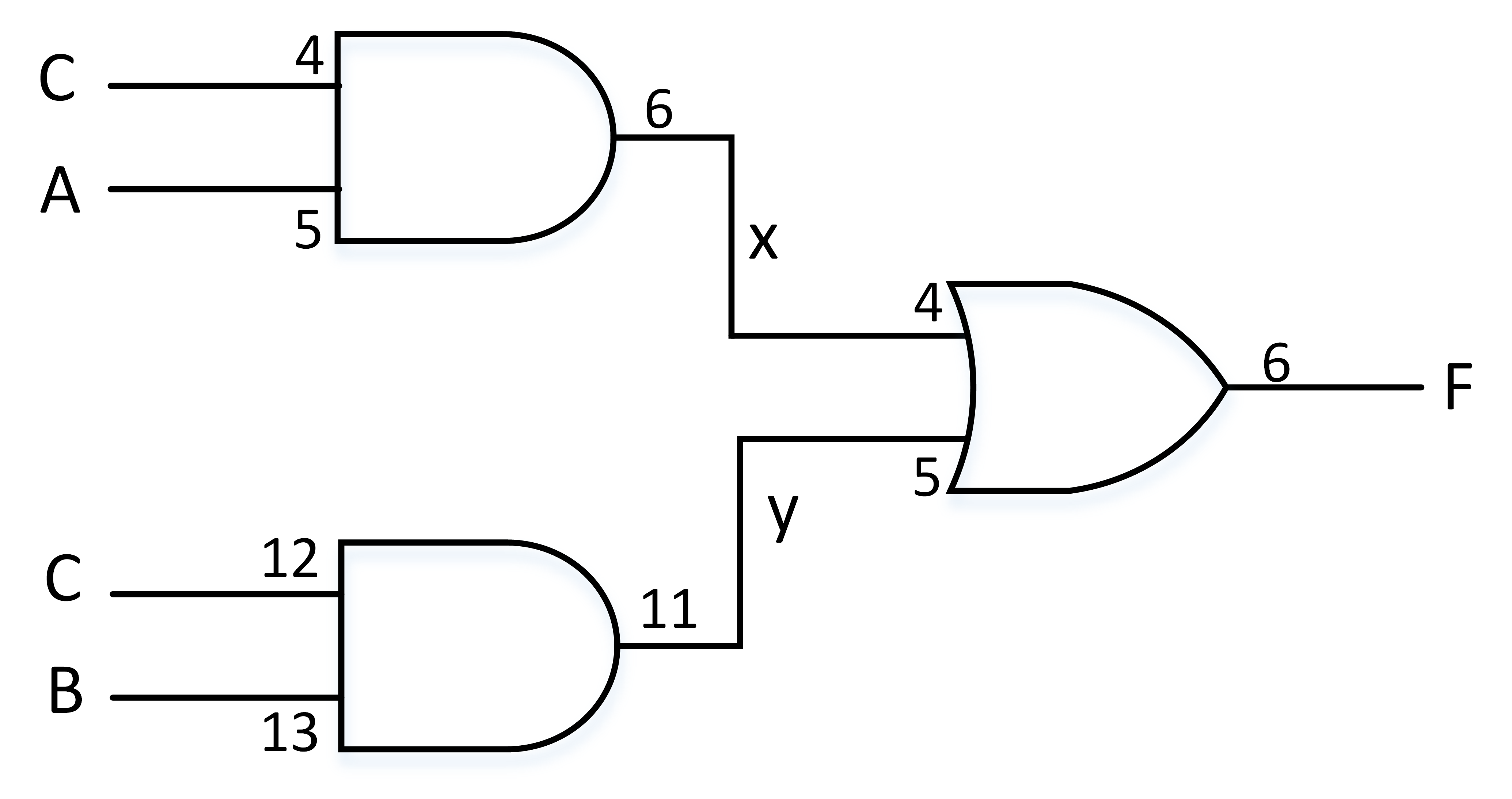 module first_verilog_str(A, B, C, F); input A; input B; input C; output F; logic x; logic y; and(x, C, A); and(y, C, B); or(F, x, y); endmodule