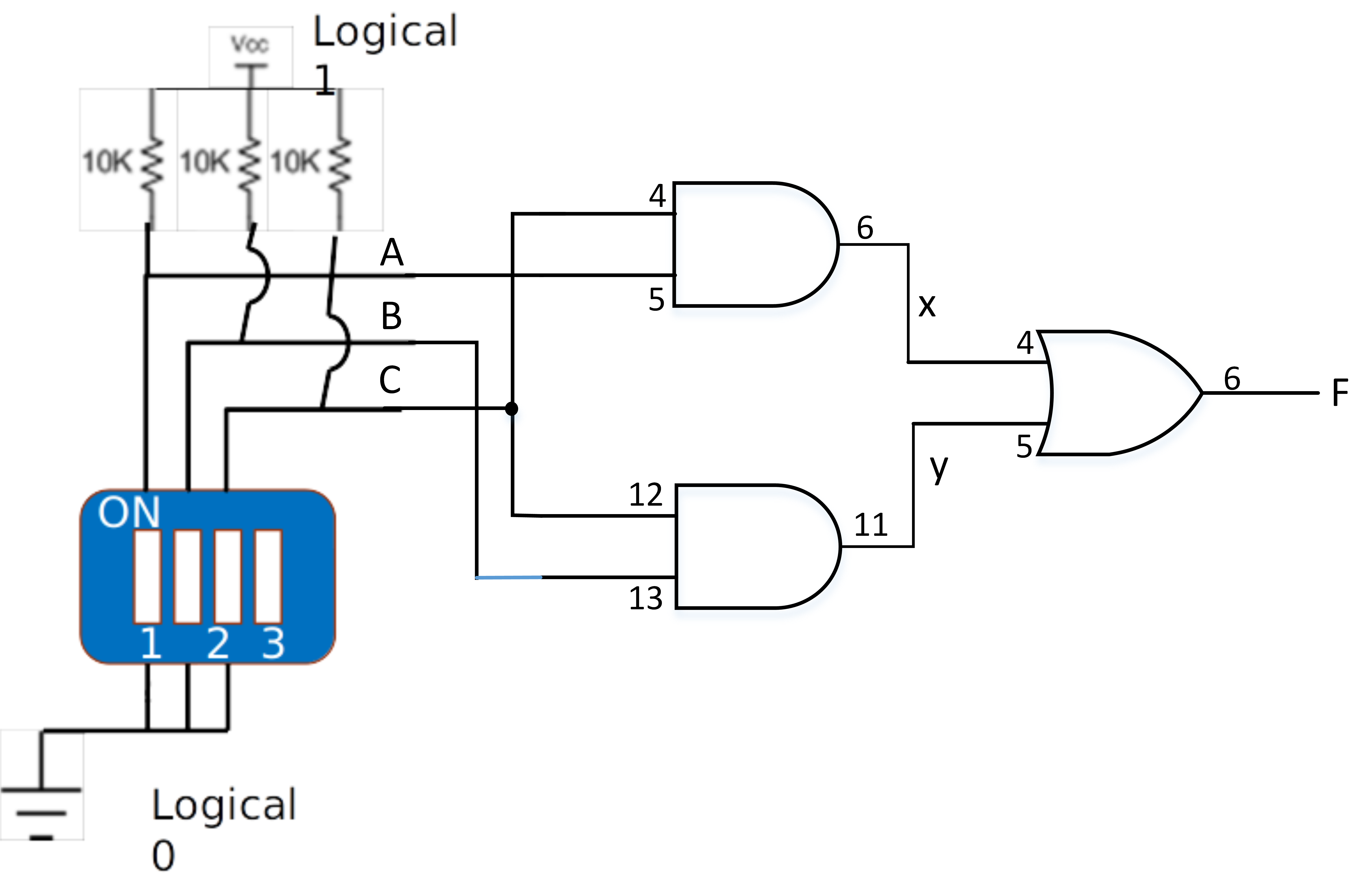 module first_verilog_IC(A, B, C, F); input A; input B; input C; output F; logic x; logic y; IC74LS08 myand(.Y2(x),.B2(A),.A2(C),.GND(1'b0),.A4(C),.B4(B),.Y4(y),.VCC(1'b1)); IC74LS32 myor(.Y1(F),.A1(x),.B1(y),.GND(1'b0),.VCC(1'b1)); endmodule