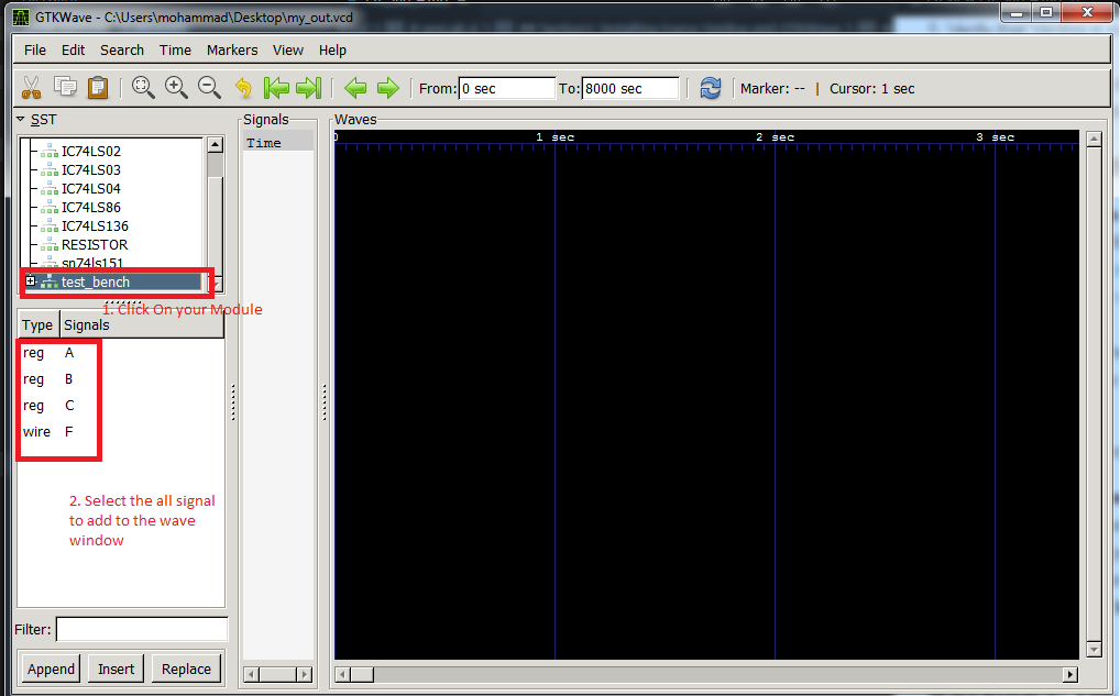 To run the waveform viewer, include the file name or simple use the GUI File menu to select the file.