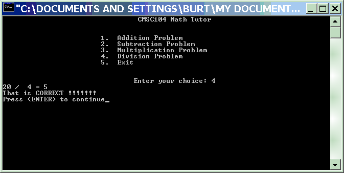 give a message to the user (Something like "That is CORRECT !!!!!!!\n".