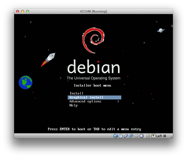 Once the installation finishes, you should be able to reboot your VM into Debian. Congratulations, you have set up the VM that we'll be using for this class!